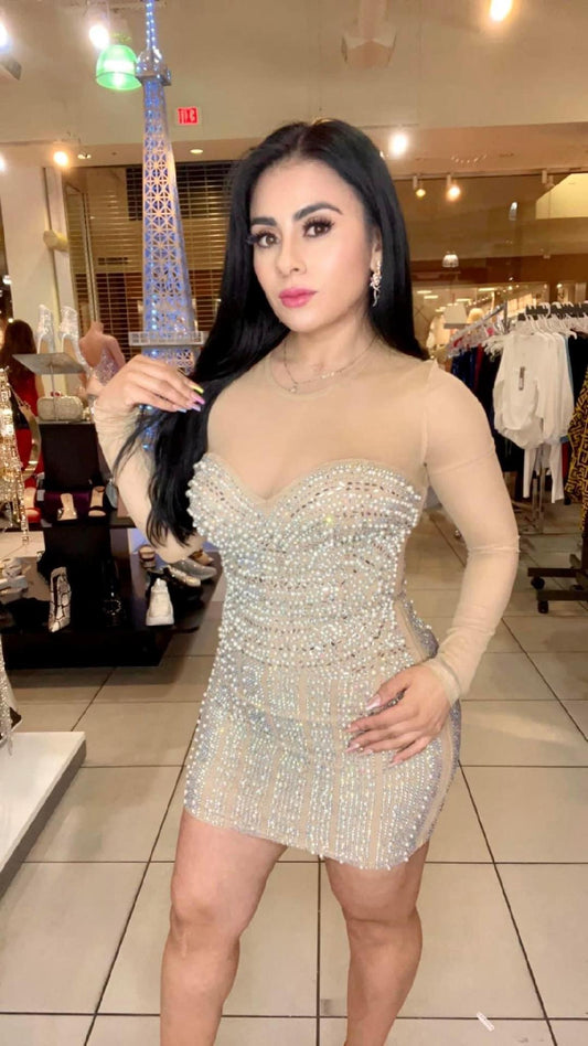 Vestido Rosa Dorado con Cadenas en los Hombros