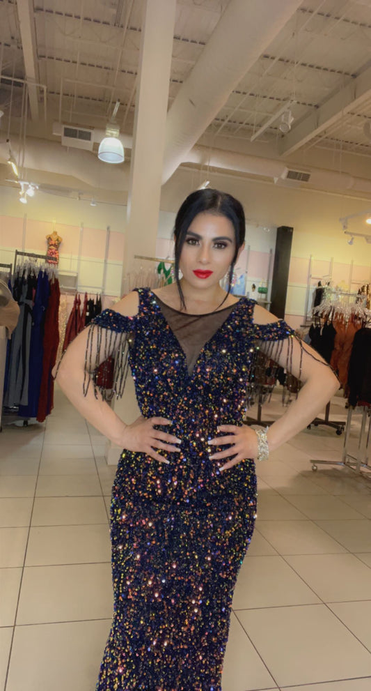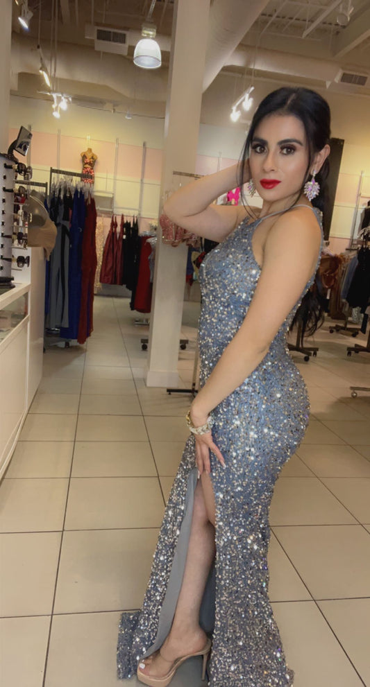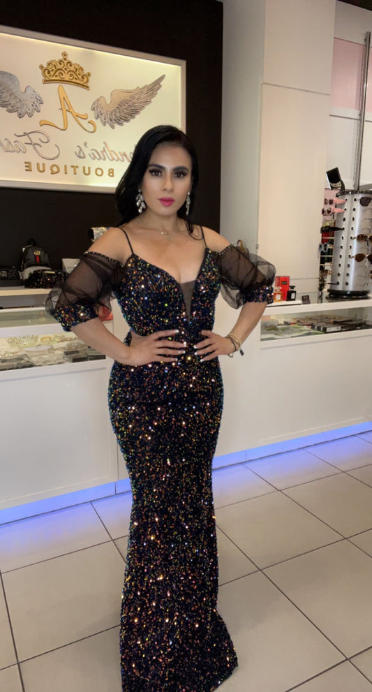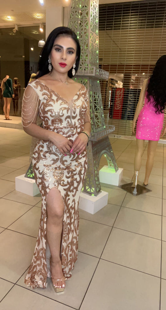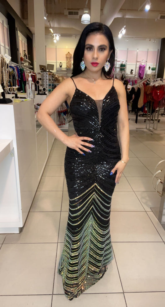 Vestido de Tirantes con Lentejuela Dorada Tornasol