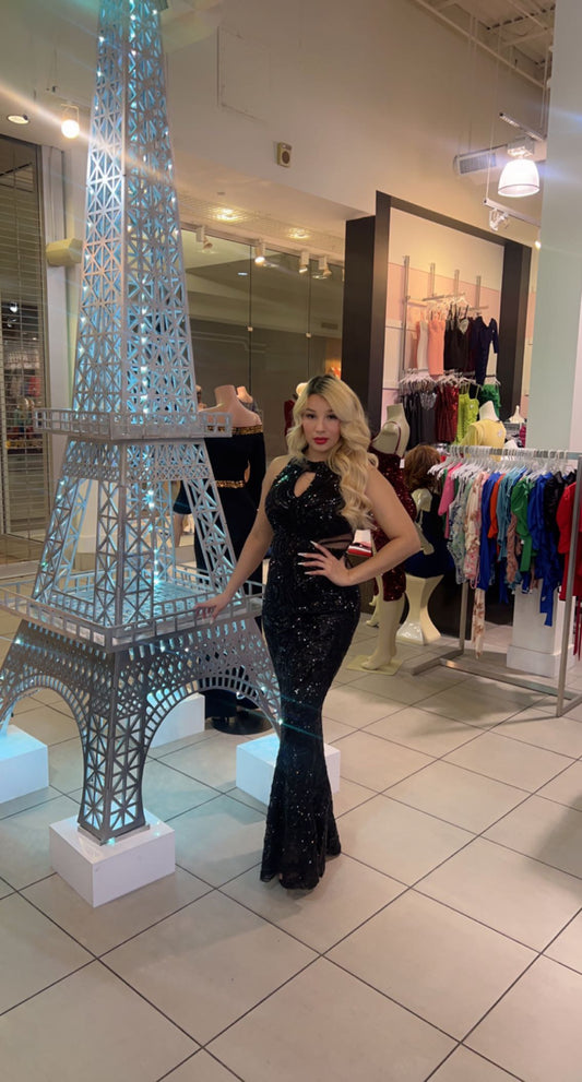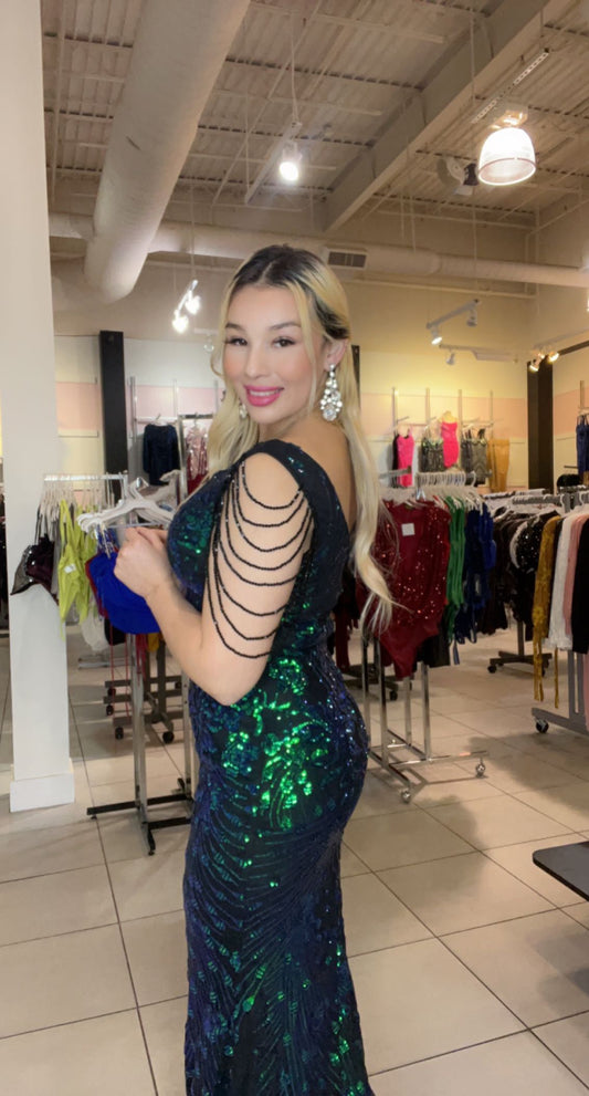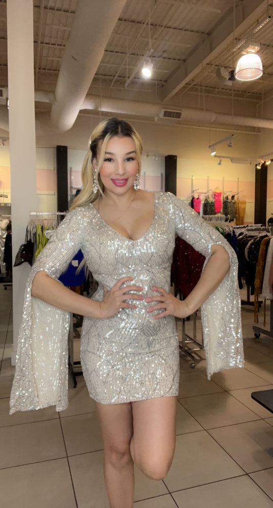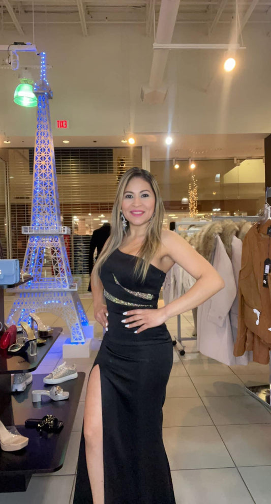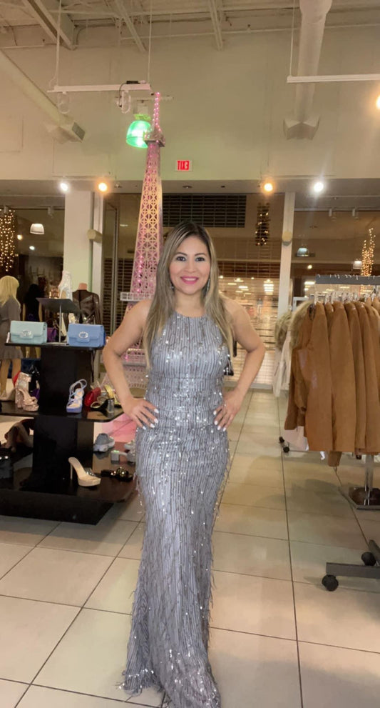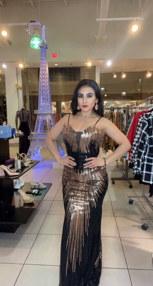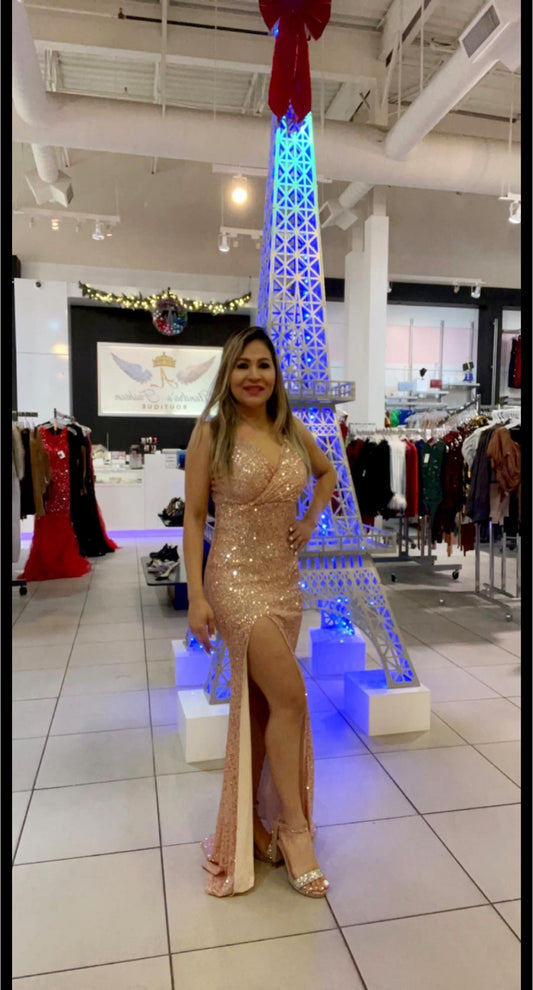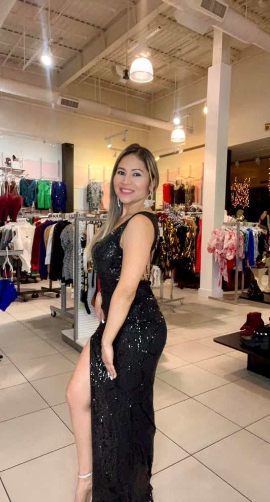 Vestido de Tirantes con Lentejuela Pierna Abierta